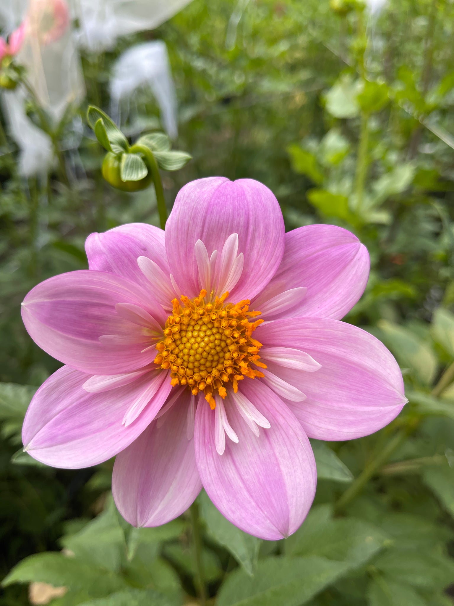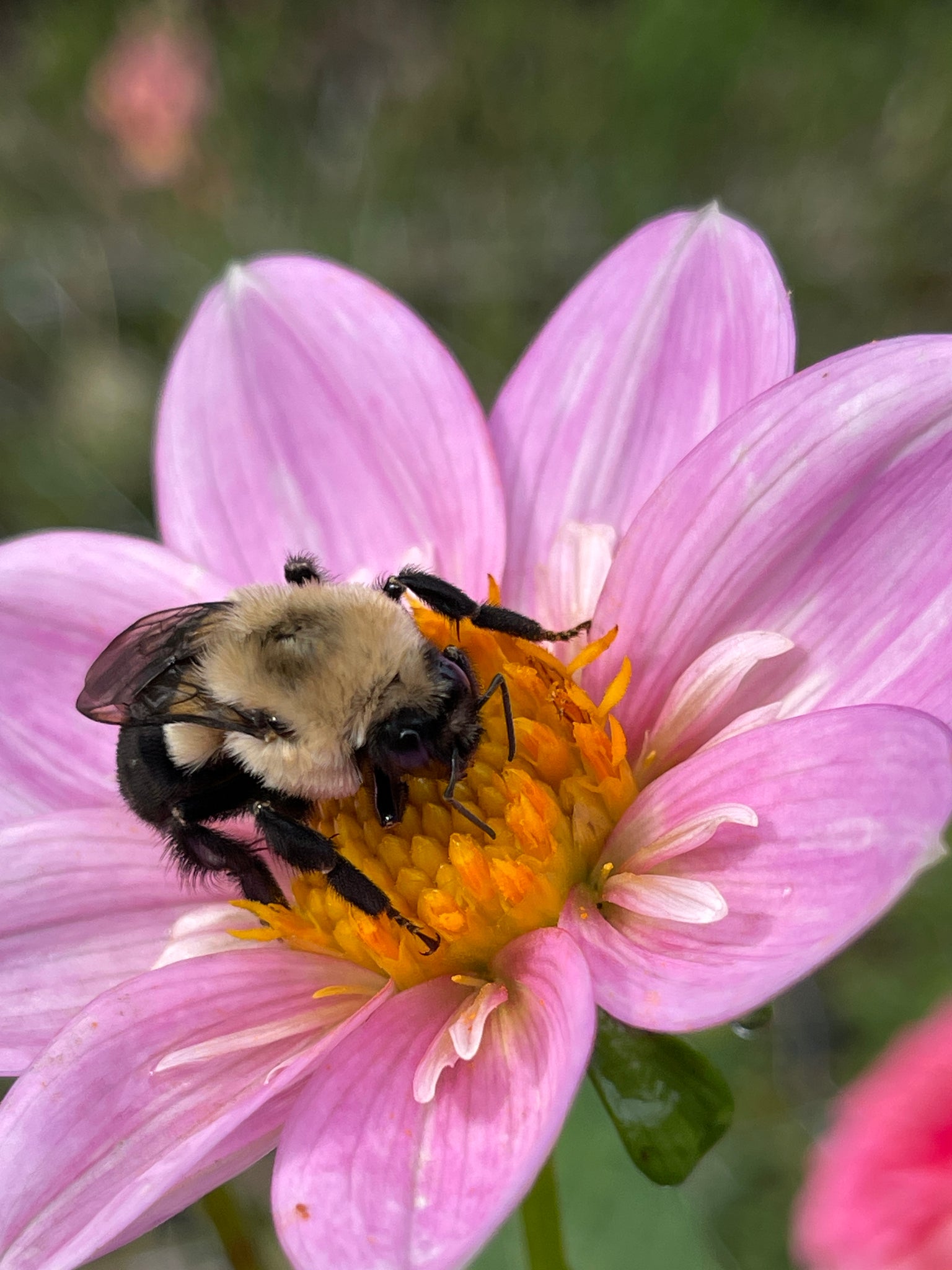 Pink petals with light pink/white petaloids and a beautiful golden centre. A favourite for honey and bumble bees!